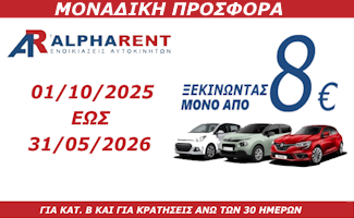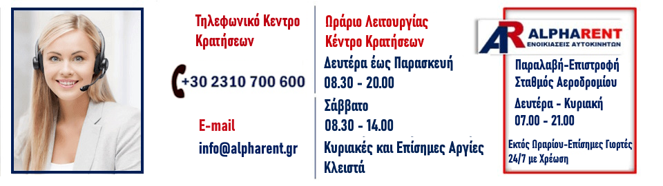 Προσφέρουμε πληθώρα επιλογών σε κάθε κατηγορία οχημάτων, ώστε να μπορείτε να επιλέξετε αυτό που ταιριάζει ακριβώς στις δικές σας ανάγκες, μέσα από έναν σύγχρονο στόλο οχημάτων που ανανεώνεται συνεχώς. Σας περιμένουμε κατά την άφιξή σας για να παραδώσουμε το όχημά σας στο αεροδρόμιο, το λιμάνι ή οποιονδήποτε κεντρικό σταθμό. Είμαστε δίπλα σας σε κάθε σας βήμα, εξασφαλίζοντας ότι απολαμβάνετε την υψηλή ποιότητα υπηρεσιών που προσφέρει μόνο η Alpharent στους πελάτες της.